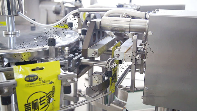 这套全自动给袋式酱料包装机主要适用于酱体类:番茄酱、花生酱、果酱、辣椒酱、豆扮酱等料的自动计量包装。