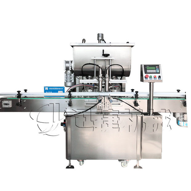 配备卧式搅拌料斗,大限度的保障在灌装过程中物料均匀、无油酱分离,确保每一瓶的灌装精确度,该设备在设计上大大缩短了下料斗到灌装头的灌装距离,克服了含油量大的油料(如:含芝麻粒的辣椒油)在灌装过程出现的有些瓶油多,有些瓶酱多的灌装误差大的缺点。