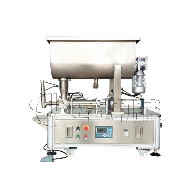 该小型辣椒酱灌装机适合于将各类粘稠体及含有各种固体物质如辣椒、花生、肉块、佐料等物体的酱类和油、料分离的火锅底料等灌装于各种容器中,适用于辣椒酱、颗粒酱料、大块肉酱、火锅底料等的灌装。